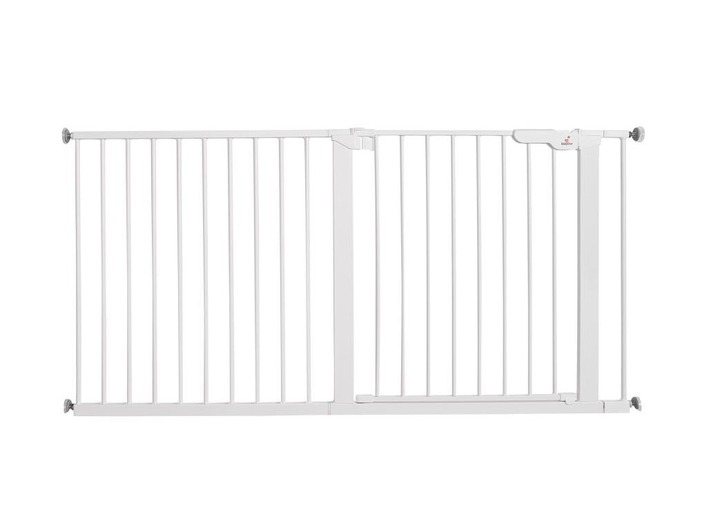 Parametre: Upevnenie: tlakové. Materiál: kov. Farba: biela. Rozmer dvierok 56 cm. Výška 73 cm. Zodpovedá najnovšej európskej norme EN1930: 2011 a ASTF1004 Vyrobené v Dánsku. Vhodné pre deti do 24 mesiacov. Hmotnosť vrátane krabice 9,2 kg.