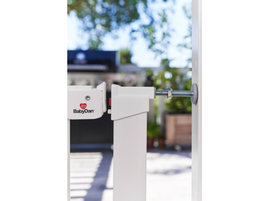 Tradičná kovová tlaková zábrana v špičkovej kvalite Supreme line - od dánskeho výrobcu Baby Dan, špecialistu na bezpečnosť detí od roku 1947. S bezpečnostným indikátorom, ktorý ukazuje, či je zábrana správne zatvorená. Trojstupňový indikátor tlaku ukazuje, či nastavenie skrutiek a tuhosť stien pri inštalácii zaisťujú bezpečnosť. Táto zábrana sa upevňuje tlakovo a môže byť ľahko namontovaná bez použitia akéhokoľvek náradia. Predĺženie je možné použiť na obidve strany zábrany. Po dokúpení predĺženia až do 183 cm.