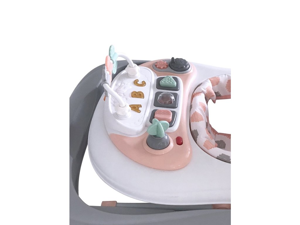 Celé chodítko je výškovo nastaviteľné v 3 polohách, takže sa prispôsobí dĺžke nôh dieťaťa. Keď je potrebné chodítko uložiť, dospelí ho môžu ľahko sklopiť cvaknutím na spodnej strane, aby zaberalo menej miesta. Herný stôl je ľahko odnímateľný a je možné ho čistiť vlhkou handričkou.