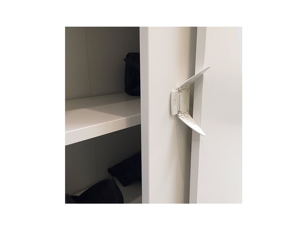 Bezpečnostný uzáver posuvných dverí. Bezpečnostný uzáver chráni proti otvoreniu posuvných dverí. Využijete ho pri komodách, skriniach alebo vitrínach s posuvnými dverami. Biodegradabilné balenie.