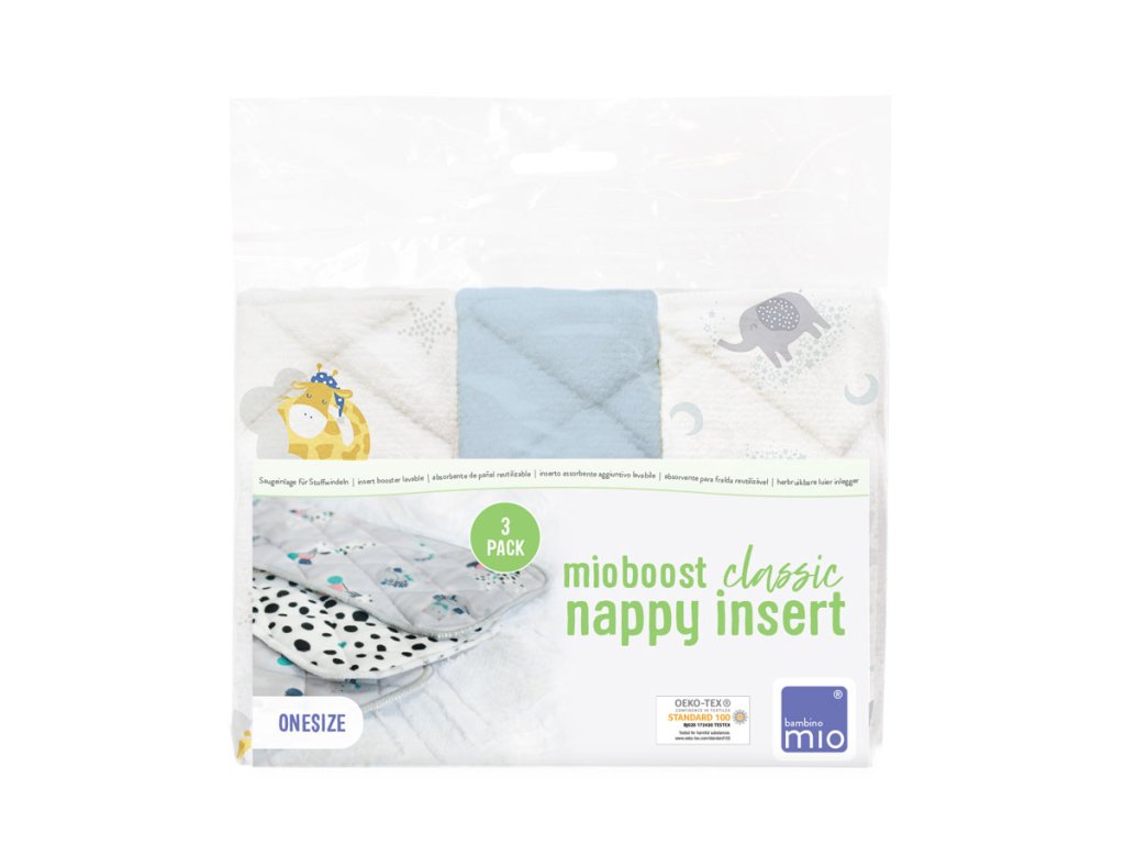 Potrebujete zvýšiť kapacitu svojich látkových plienok? Potom by vám mohla pomôcť plienková vkladacia absorpčná vložka Mio Boost. Je tvorená super absorpčným jadrom a separačnou vrstvou vytvárajúcou bariéru proti spätnému presakovaniu na pokožku dieťaťa. 3 kusy v balení. Teraz s novým motívom Dreamland.