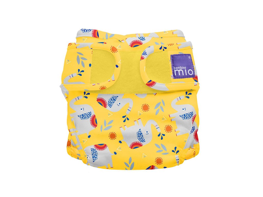 Vrchné plienkové nohavičky Miosoft Elephant Stomp patria k dvojdielnému systému Bambino Mio, kde jedna veľkosť originálnej plienky a dve veľkosti plienkových nohavičiek budú stačiť od narodenia do doby, keď bude vaše dieťatko chodiť na nočník. Vďaka svojmu zapínaniu na suchý zips je práca s nimi veľmi rýchla, jednoduchá a umožňuje prispôsobenie každému dieťaťu. Tvar suchého zipsu bráni vytváraniu ostrých rohov a tak chránia pred odrením jemnej detskej pokožky. Vnútorná polyuretánová vrstva prepúšťa menšie molekuly plynov a pár avšak zabraňuje priechodu kvapalín a tekutín. Dieťa sa tak nezaparí, ale ani neznečistí svoje okolie. Pozor, pôsobenie detských olejčekov znižuje životnosť nepriepustnej vrstvy.