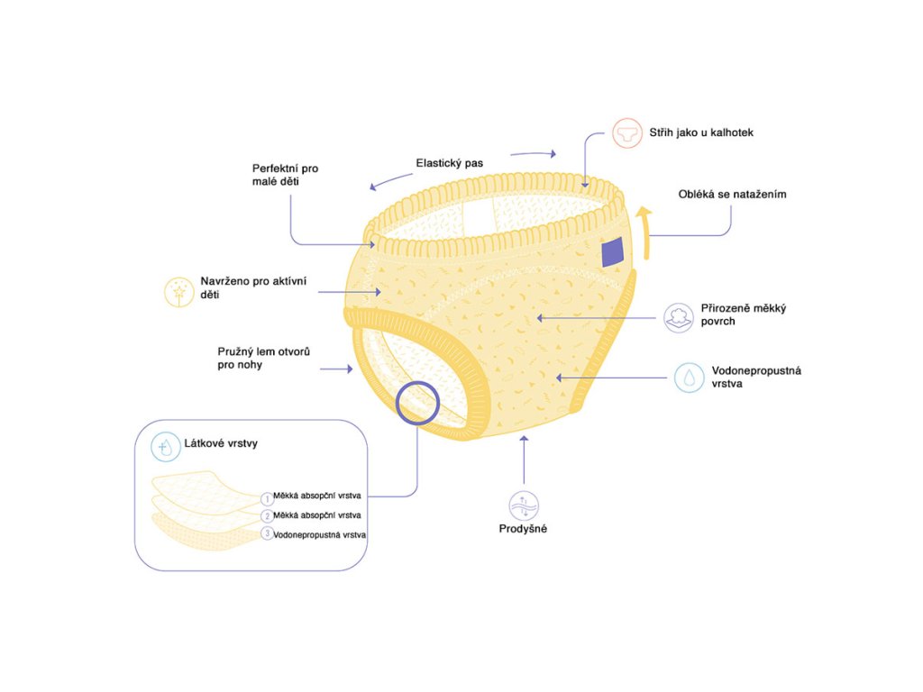 Prechod od plienok k spodnému prádlu nebýva vždy jednoduchý. Učiace nohavičky vybavené nepriepustnou vrstvou a absorpčnou vrstvou čiastočne chránia pred nehodami v tomto období. Pomáhajú zrýchliť proces učenia sa na nočník, avšak nenahradzujú plienky. Ak je dieťa pripravené, môžete mu ich dať ako darček. Dodajú mu pocit, že už vyrástlo a plienky nepotrebuje. Nepoužívajte ich skôr, ako je dieťa k prechodu na nočník pripravené.