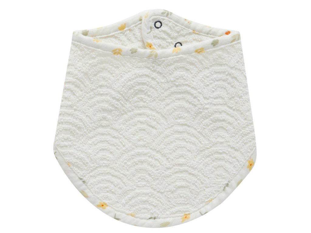Tento béžový módny slintáčik-bandana z bavlneného froté, môže vaše dieťa nosiť po celý deň. Super užitočné, keď potrebujete ochrániť oblečenie pri kŕmení alebo ak dieťa pri raste zubov viac sliní. Slintáčik má certifikáciu Öko-Tex a môže byť veľmi originálnym darčekom k narodeniu bábätka.