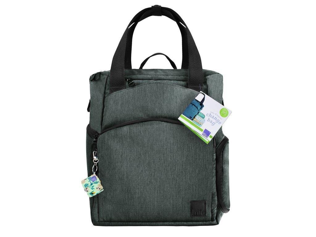 - Kompatibilný s látkovými plienkami – mnoho priestoru na uloženie opakovane použiteľných plienok a unikátne vodeodolné vrecko* na uloženie použitých plienok.