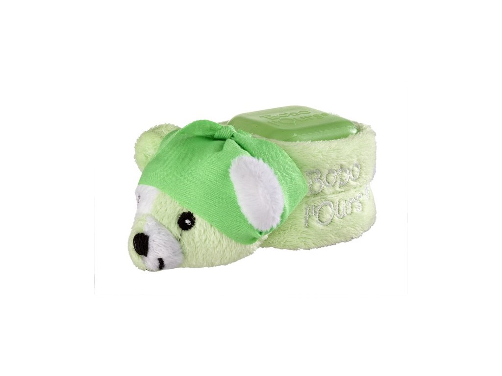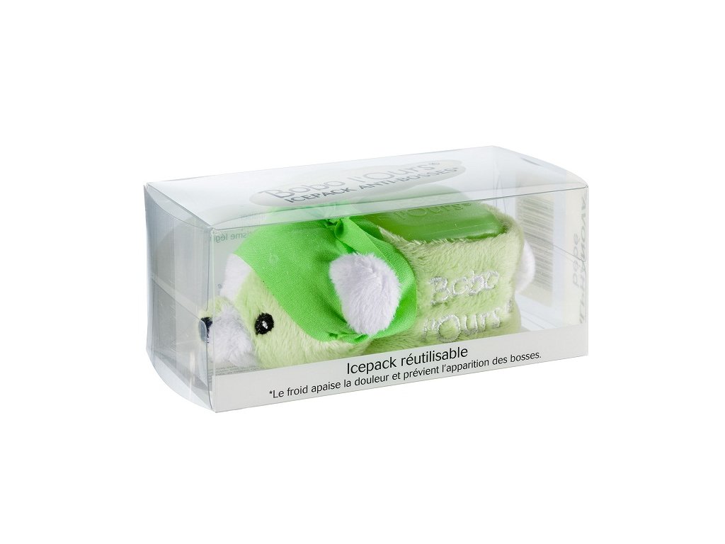 Chladivá kocku ľadu, ktorá sa aplikuje na bolestivé miesto. Okamžite upokojuje bolesť. Ako sa používa? Bobo l'Ours sa uloží do chladničky. Netreba vyberať kocku z plyšu. V prípade úrazu stačí vziať Bobo l'Ours z chladničky - hneď je pripravené na použitie.