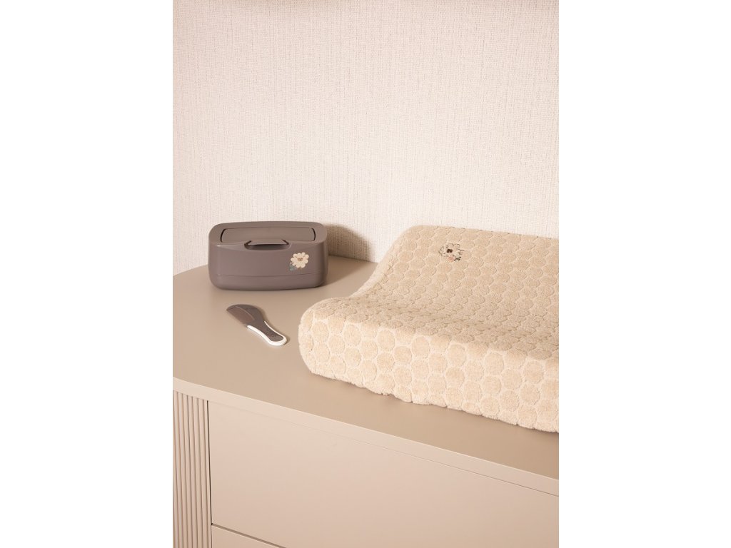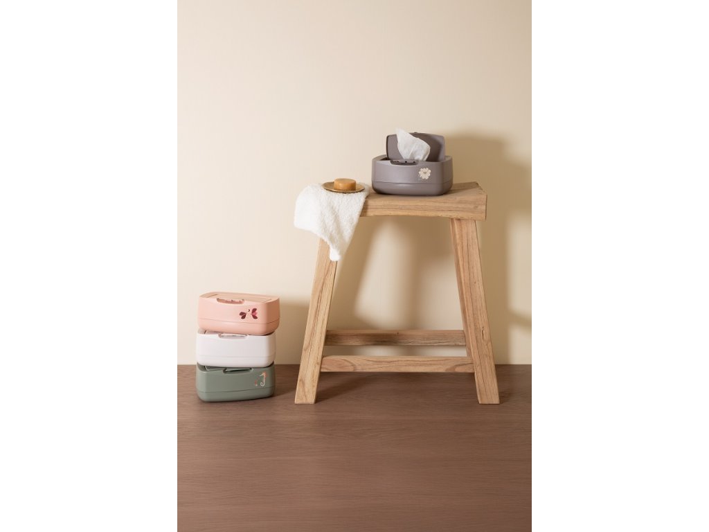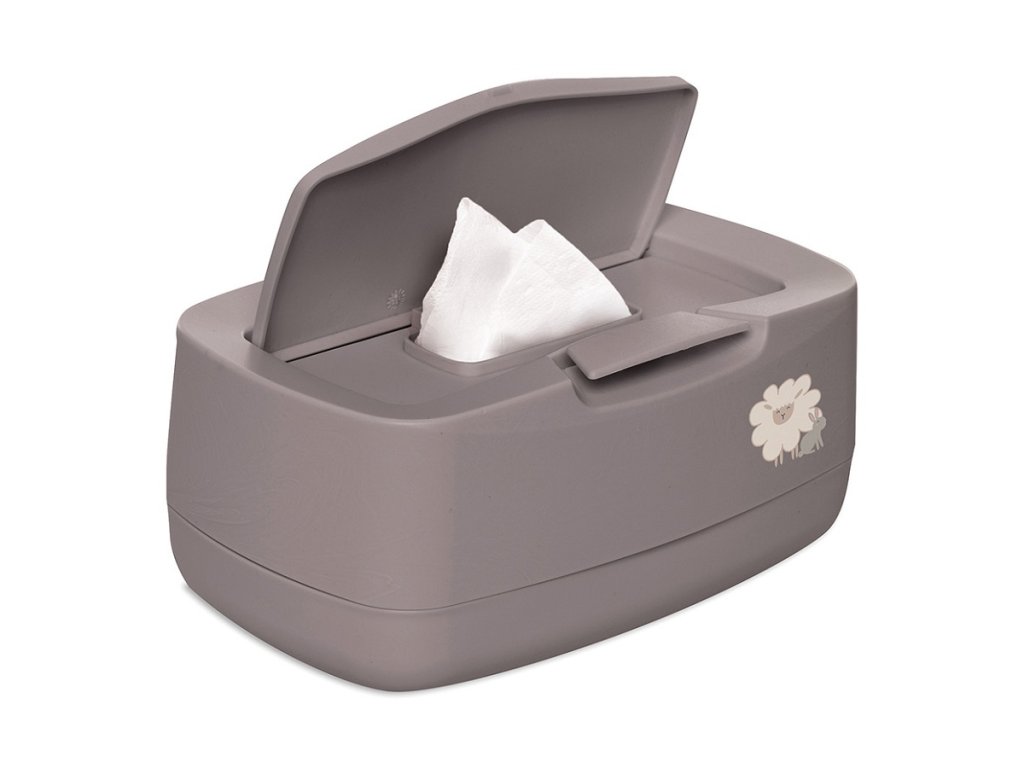 Univerzálny box na vlhčené obrúsky v modernom dizajne s ochranou proti vyschnutiu. Krásny doplnok na prebaľovaciu komodu. Je ľahko uzatvárateľný, aby sa predišlo vysychaniu obrúskov. Box je možné otvoriť jednou rukou. Špeciálne otváranie sa ďalej postará o to, že ďalší obrúsok budete môcť bez námahy vytiahnuť von a ihneď použiť.