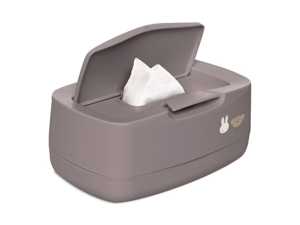 Univerzálny box na vlhčené obrúsky v modernom dizajne s ochranou proti vyschnutiu. Krásny doplnok na prebaľovaciu komodu. Je ľahko uzatvárateľný, aby sa predišlo vysychaniu obrúskov. Box je možné otvoriť jednou rukou. Špeciálne otváranie sa ďalej postará, že ďalší obrúsok budete môcť bez námahy vytiahnuť von a ihneď použiť.