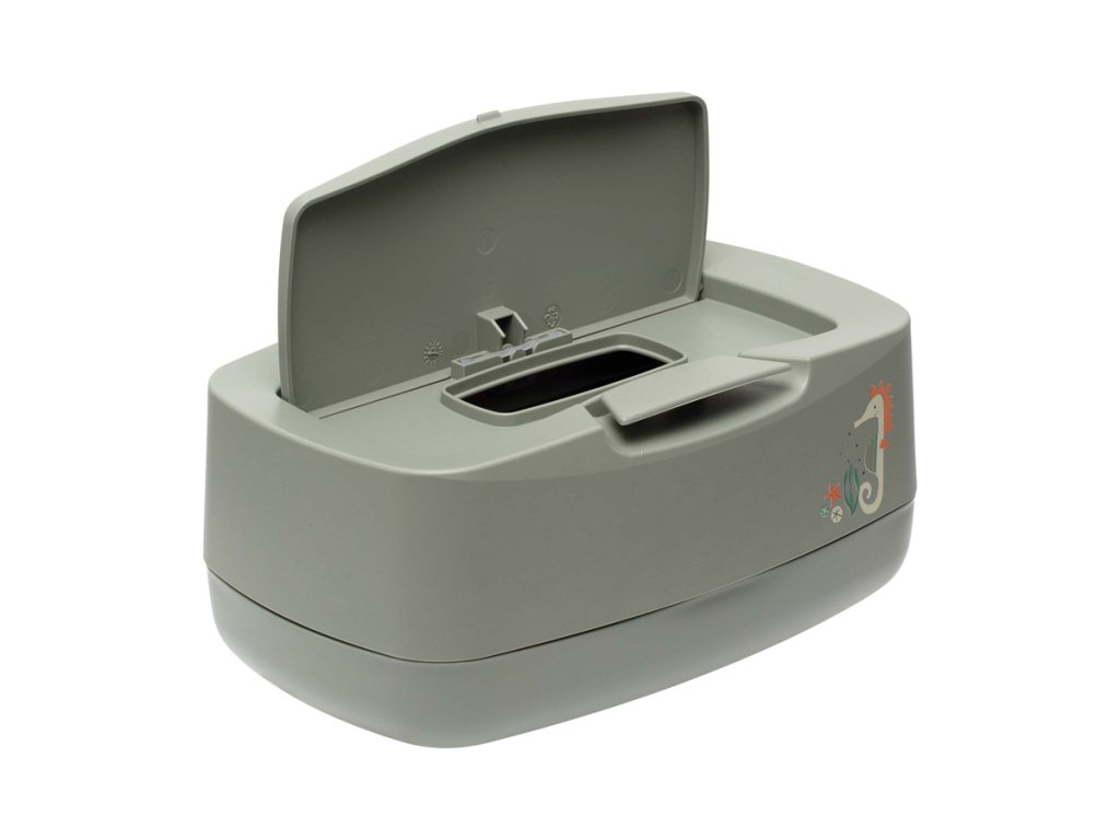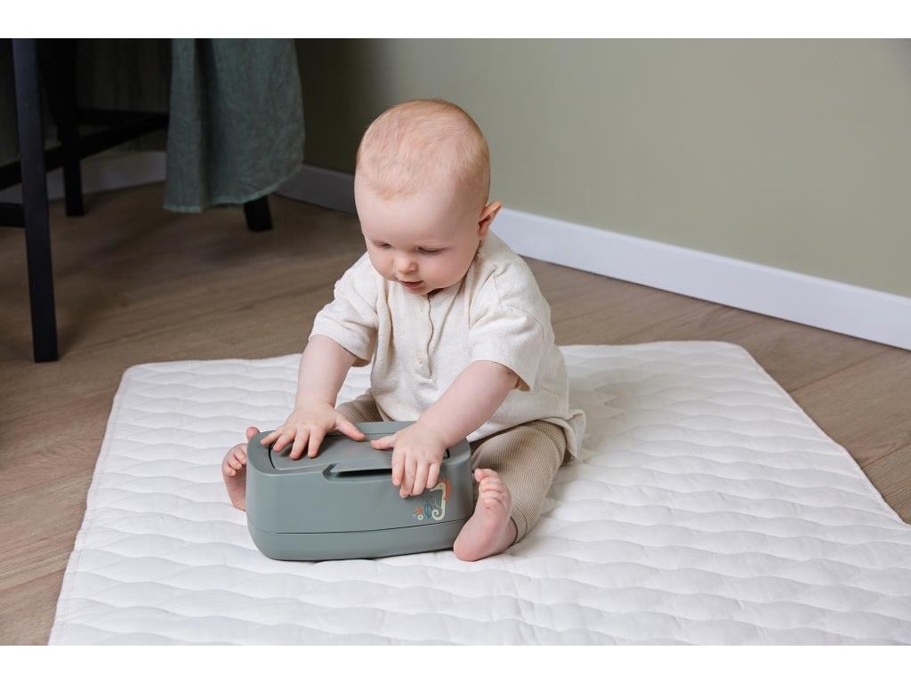 Univerzálny box na vlhčené obrúsky v modernom dizajne s ochranou proti vyschnutiu. Krásny doplnok na prebaľovaciu komodu. Je ľahko uzatvárateľný, aby sa predišlo vysychaniu obrúskov. Box je možné otvoriť jednou rukou. Špeciálne otváranie sa ďalej postará, že ďalší obrúsok budete môcť bez námahy vytiahnuť von a ihneď použiť.