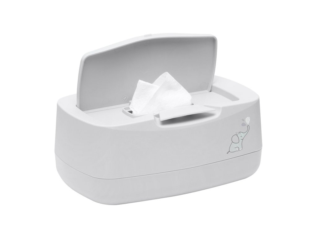 Univerzálny box na vlhčené obrúsky v modernom dizajne s ochranou proti vyschnutiu. Krásny doplnok na prebaľovaciu komodu. Je ľahko uzatvárateľný, aby sa predišlo vysychaniu obrúskov. Box je možné otvoriť jednou rukou. Špeciálne otváranie sa ďalej postará, že ďalší obrúsok budete môcť bez námahy vytiahnuť von a ihneď použiť.