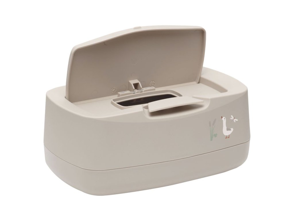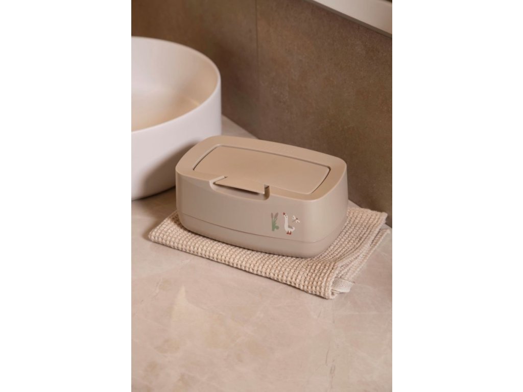 Univerzálny box na vlhčené obrúsky v modernom dizajne s ochranou proti vyschnutiu. Krásny doplnok na prebaľovaciu komodu. Je ľahko uzatvárateľný, aby sa predišlo vysychaniu obrúskov. Box je možné otvoriť jednou rukou. Špeciálne otváranie sa ďalej postará, že ďalší obrúsok budete môcť bez námahy vytiahnuť von a ihneď použiť.
