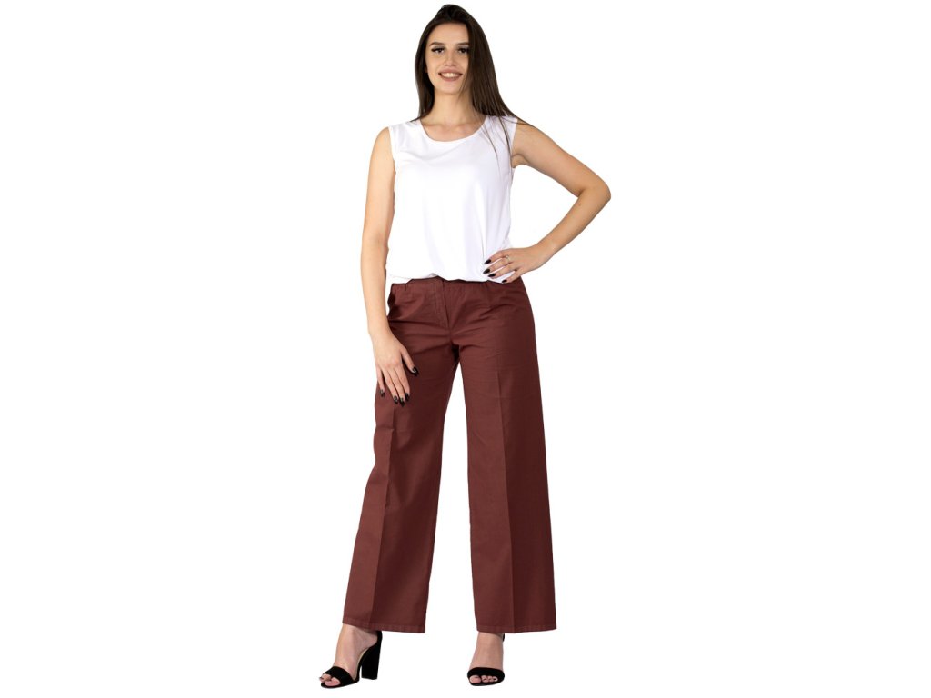 Dámske bavlnené letné nohavice hnedej farby s voľnými nohavicami a pohodlným pásikom do gumy. Sú vyrobené z bavlneného plátna s lycrou. Dolný obvod nohavíc 58 cm pri veľkosti 38.