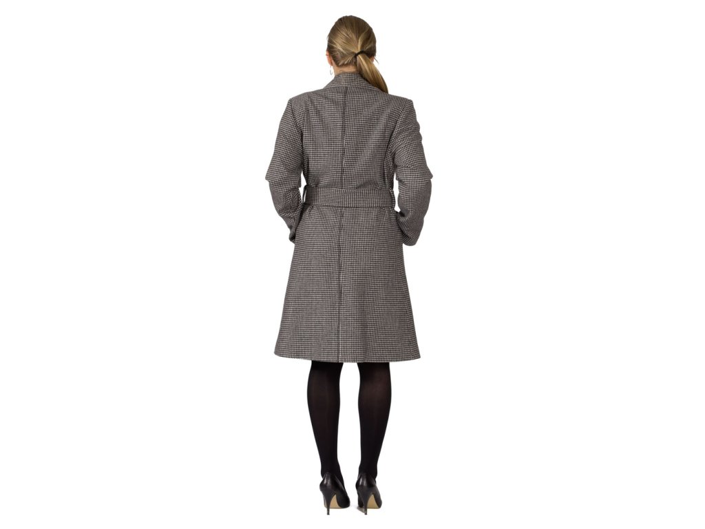 Elegantný kabát zapínaný na moderné magnety s vreckami v členiacich švoch a viazačkou v páse.
