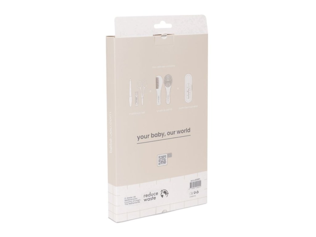 Roztomilá štvordielna darčeková sada poteší novopečených rodičov hneď niekoľkokrát. Prvýkrát, keď ju dostane a potom zakaždým, keď ju budú používať. Nie je to len krásny darček, ale aj veľmi praktická, krásne zabalená sada. Obsahuje kúpací teplomer, manikúru, hrebeň a kefu.