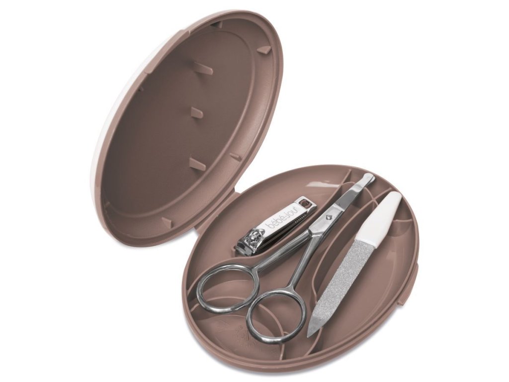 Manikúra obsahuje nožnice so zaguľatenými koncami, pilníček na nechty a tiež klieštiky na nechty. Všetko je vyrobené z nehrdzavejúcej ušľachtilej ocele. Krabička chráni pred prachom a pomáha udržiavať manikúru v čistote. Ale aj napriek tomu pred každým použitím jednotlivé nástroje starostlivo očistite a u novorodencov aj dezinfikujte roztokom liehu.