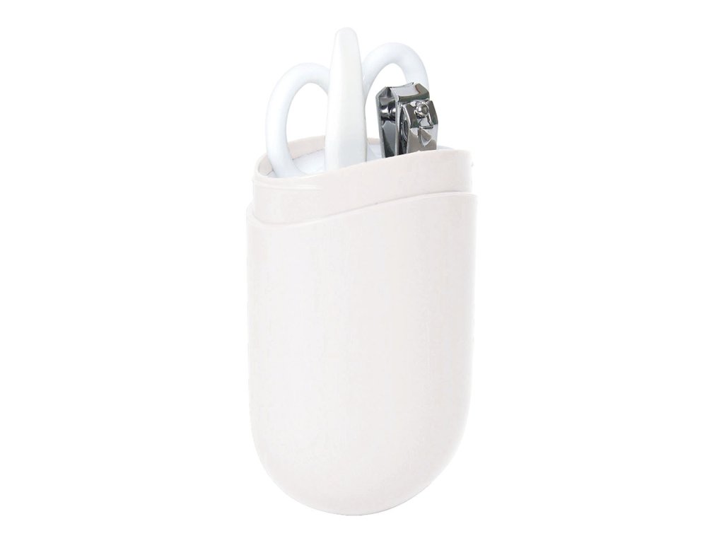 Manikúra obsahuje nožnice so zaguľatenými koncami, pilníček na nechty a tiež klieštiky na nechty. Všetko je vyrobené z nehrdzavejúcej ušľachtilej ocele. Krabička chráni pred prachom a pomáha udržiavať manikúru v čistote. Ale aj napriek tomu pred každým použitím jednotlivé nástroje starostlivo očistite a u novorodencov aj dezinfikujte roztokom liehu.