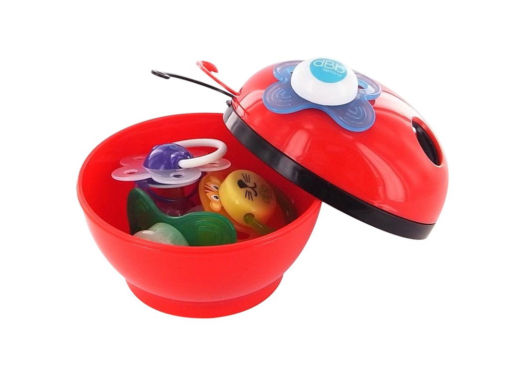 Schránka na cumlíky s mnohými možnosťami využitia. Uložíte do nej až 8 cumlíkov, z vonka pojme 4 cumlíky. Pridaním trochy vody na dno a umiestnením do mikrovlnky môžete cumlíky sterilizovať parou. Rukoväť poslúži pri upevnenie na kočík alebo na postieľku.