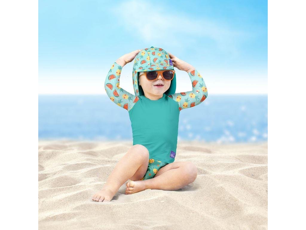 Perfektná UV40+ ochrana pre malých námorníkov a objaviteľov! Chráňte pokožku dieťaťa s našim detským tričkom do vody s UV filtrom. Tričko Tropical vhodne dopĺňa plavky Bambino Mio, ktoré nájdete v súvisiacom tovare.