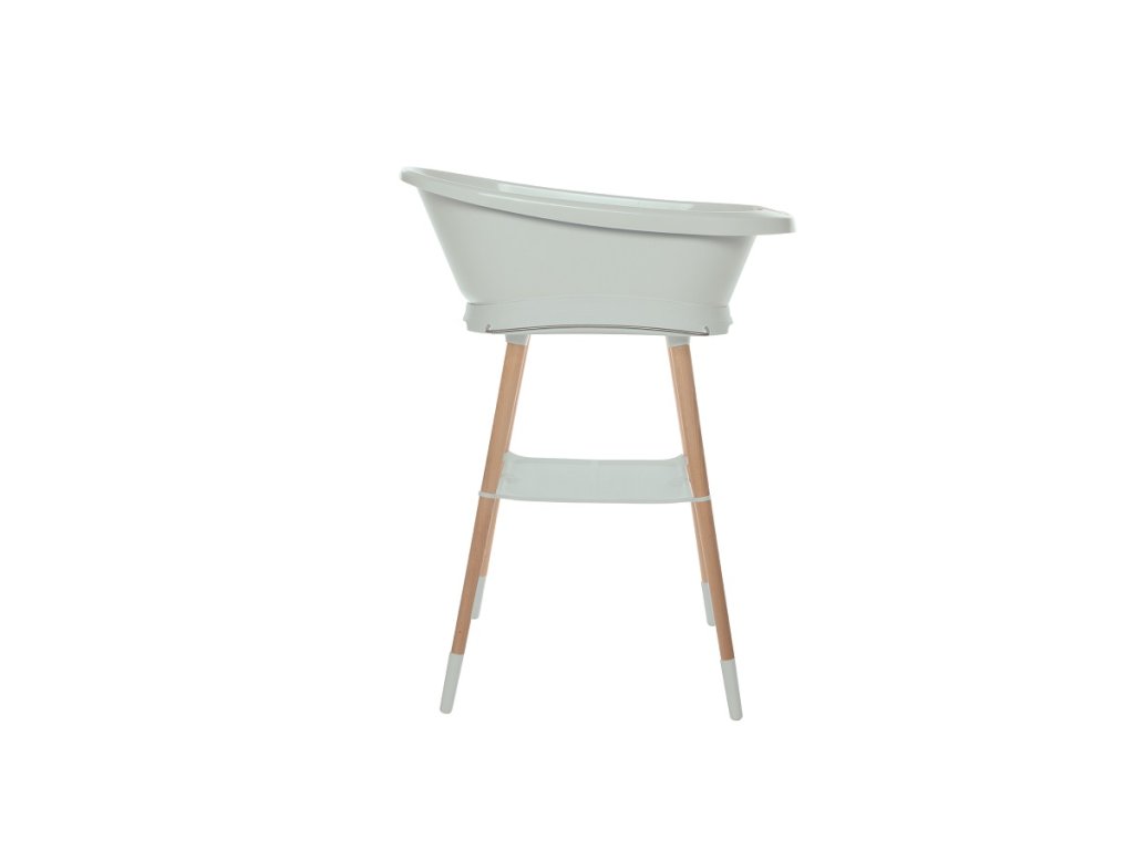 Veľmi stabilný vaňový stojan Sense má nohy vyrobené z lakovaného bukového dreva s certifikáciou FSC. To dodáva stojanu teplý moderný vzhľad. Je vybavený praktickými pomôckami; vpredu je pripevnený držiak na uteráky. Priestranná plastová polička poskytuje dostatok miesta napríklad na šampón, žinku, vodné hračky alebo kúpací gél. To znamená, že máte po ruke všetky potrebné veci, aby ste si s malým mohli v pokoji kúpanie užiť. Inovatívny systém upevnenia zaisťuje, že vaňu možno ľahko pripevniť k stojanu a rovnako ľahko sňať. Po kliknutí môžete svoje bábätko nerušene a bezpečne kúpať.