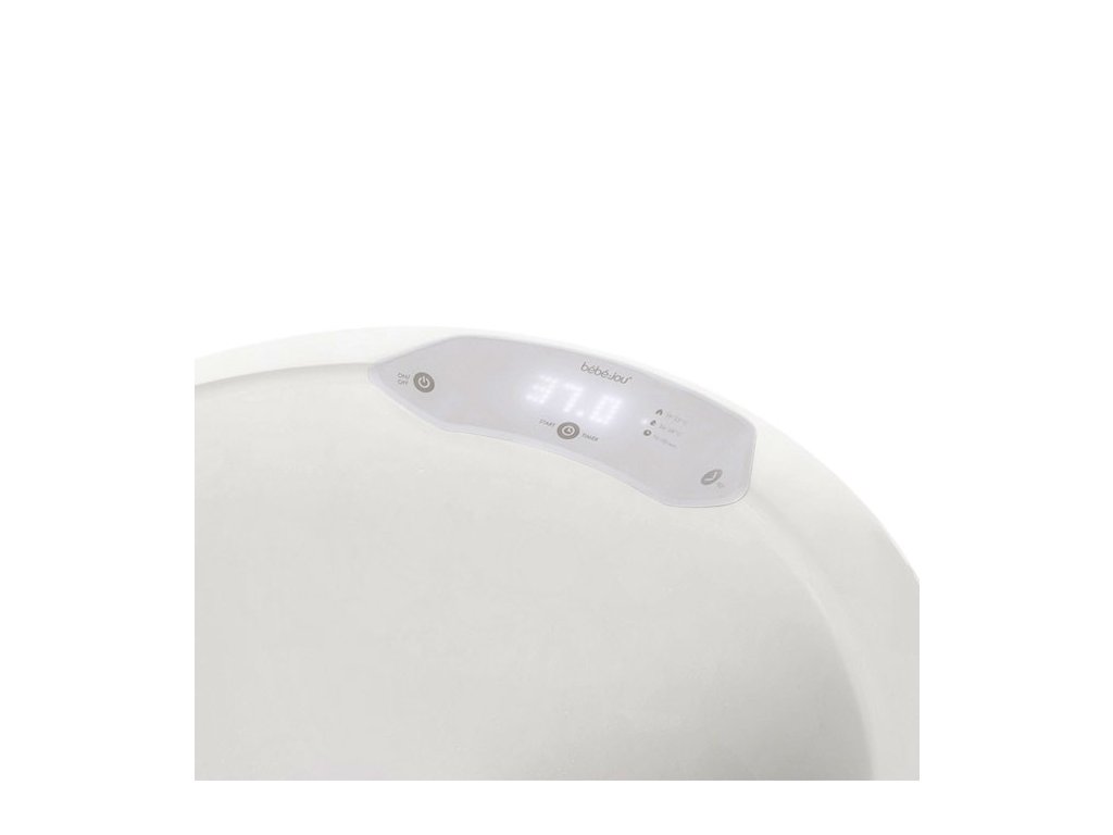 Detská vanička Sense Edition je vybavená inovatívnou digitálnou jednotkou s teplomerom a časovačom. Integrovaný teplomer meria teplotu vody i miestnosti. Týmto spôsobom môžete svojmu dieťaťu zaistiť bezpečnú a príjemnú teplotu, nech je vanička umiestnená kdekoľvek. Informácie sa zobrazujú na digitálnom module pomocou bezdrôtového pripojenia. Pri vodných hrách ľahko pozabudneme na čas a preto je šikovný LED modul s dotykovou plochou tiež vybavený časovačom. Tak predídete prílišnému vysušeniu jemnej pokožky dieťatka, spôsobenému príliš dlhý pobytom vo vode.