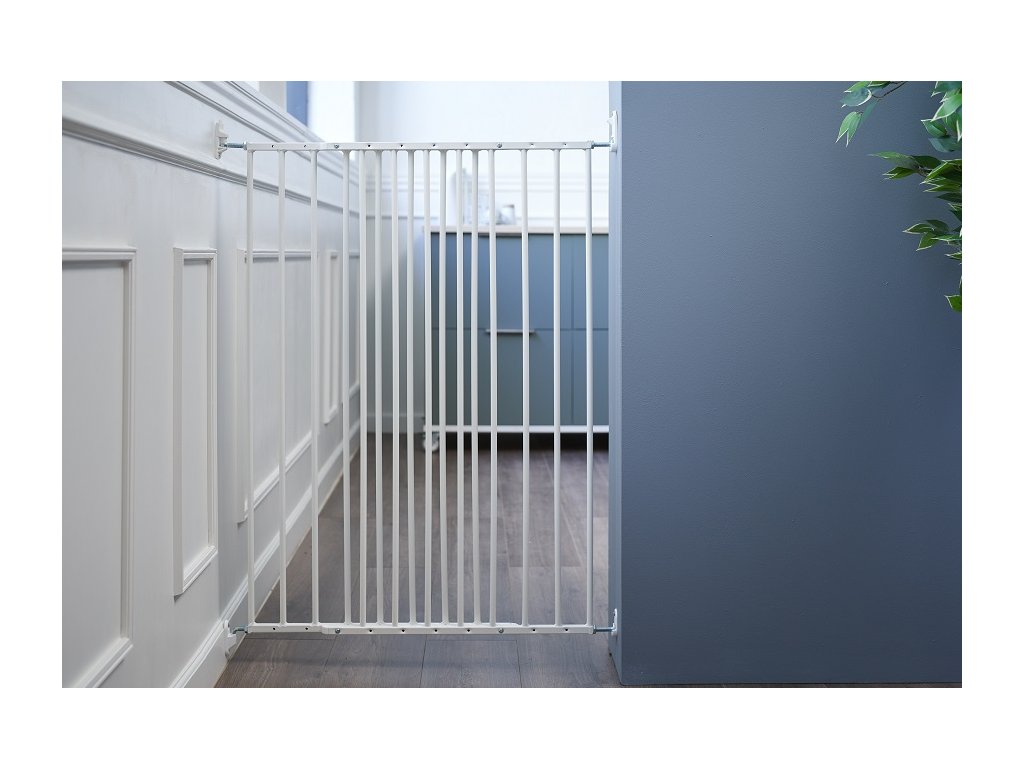 DogSpace Charlie je extra vysoká brána pre domácich miláčikov, ktorá sa vďaka svojmu flexibilnému dizajnu zmestí do akéhokoľvek otvoru medzi 62,5-106,8 cm. Je obzvlášť vhodná pre montáž na hornú alebo spodnú časť schodiska, pretože sú držiaky priskrutkované k stene pre extra bezpečné uchytenie.