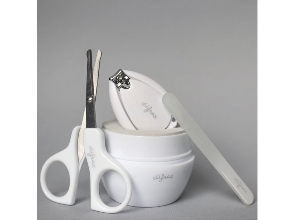 Manikúrna sada Difrax Baby Deluxe je špeciálne navrhnutá na strihanie a starostlivosť o detské nechty. Sada sa skladá z nožníc so zaoblenými špičkami, štipok s extra úchopom a odolného pilníka z mäkkého skla.
