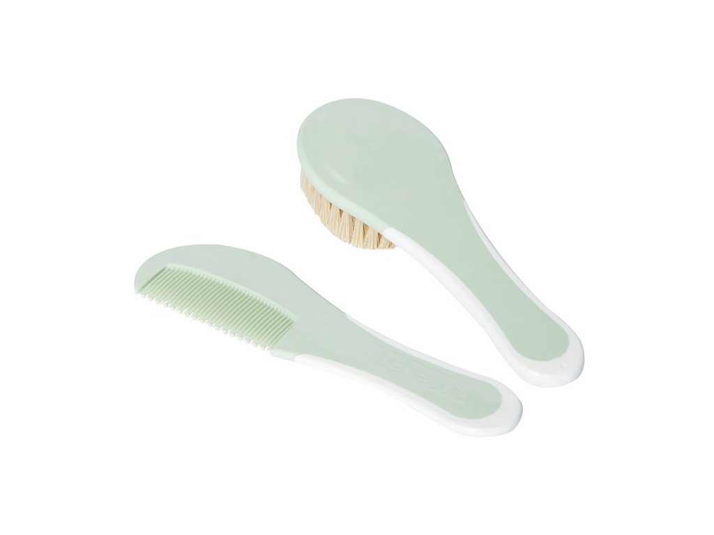 Praktická sada pre starostlivosť o vlásky novorodencov a bábätiek. Na rozdiel od iných kief vyrobených z tvrdého silónu má kefa od Bébé-Jou mäkký prírodný vlas nedráždiaci jemnú pokožku detskej hlavičky. Hrebeň je ergonomicky tvarovaný a vďaka zaguľateným špičkám zubov nemôže poškriabať pri česaní. Ľahko sa udržuje v čistote umytím v teplej vode s trochou mydla.