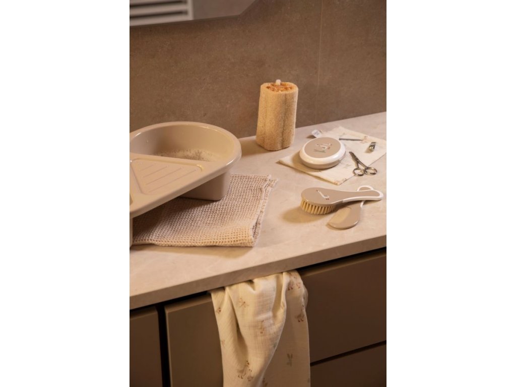 Praktická sada pre starostlivosť o vlásky novorodencov a bábätiek. Na rozdiel od iných kief vyrobených z tvrdého silónu, kefa od bébé-jou má mäkký prírodný vlas nedráždiaci jemnú pokožku detskej hlavičky. Hrebeň je ergonomicky tvarovaný a vďaka zaguľateným špičkám zubov nemôže poškriabať pri česaní. Ľahko sa udržuje v čistote umytím v teplej vode s trochou mydla.