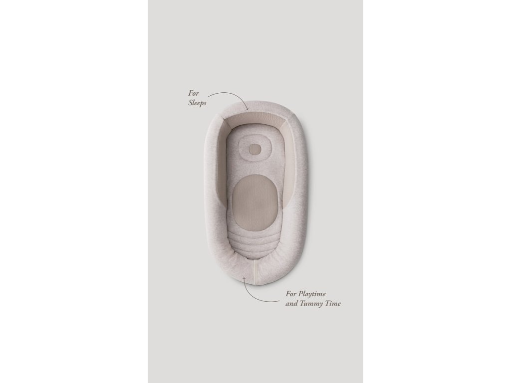 Pohodlie, priedušnosť a perfektná ergonómia: Tvar výrobku uľahčuje udržanie polohy na bruchu, zatiaľ čo tuhá opora na chrbte vždy zaručí správnu postúru novorodenca. Pevná podpera je vybavená mikrootvormi, ktoré zvyšujú priedušnosť, matrac obsahuje nastaviteľný valec, ktorý zaručuje prirodzenú flexiu nôh av polohe hlavy je oválna podpora, ktorá znižuje riziko plagiocefálie. Je to tým, že napomáha správnemu uzavretiu zadnej fontanely. Použitie priedušných materiálov a prírodných tkanín, ako je bambus a bavlna, zaručujú optimálne pohodlie a priedušnosť a podporujú prirodzenú termoreguláciu dieťaťa
