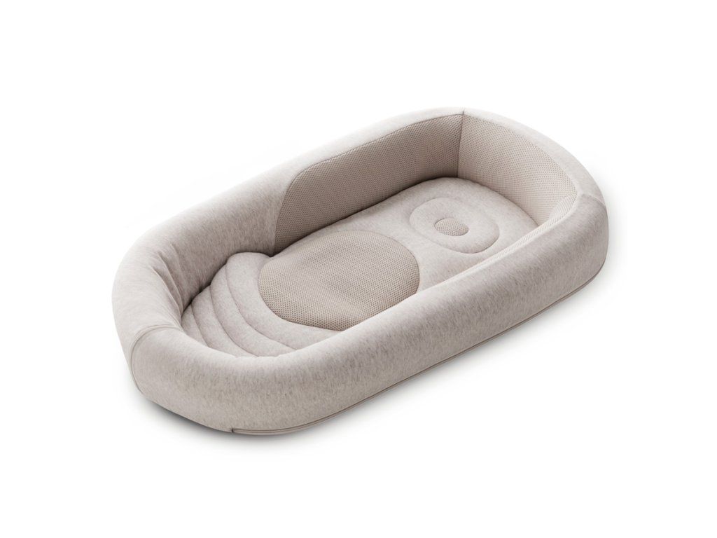 Pohodlie, priedušnosť a perfektná ergonómia: Tvar výrobku uľahčuje udržanie polohy na bruchu, zatiaľ čo tuhá opora na chrbte vždy zaručí správnu postúru novorodenca. Pevná podpera je vybavená mikrootvormi, ktoré zvyšujú priedušnosť, matrac obsahuje nastaviteľný valec, ktorý zaručuje prirodzenú flexiu nôh av polohe hlavy je oválna podpora, ktorá znižuje riziko plagiocefálie. Je to tým, že napomáha správnemu uzavretiu zadnej fontanely. Použitie priedušných materiálov a prírodných tkanín, ako je bambus a bavlna, zaručujú optimálne pohodlie a priedušnosť a podporujú prirodzenú termoreguláciu dieťaťa