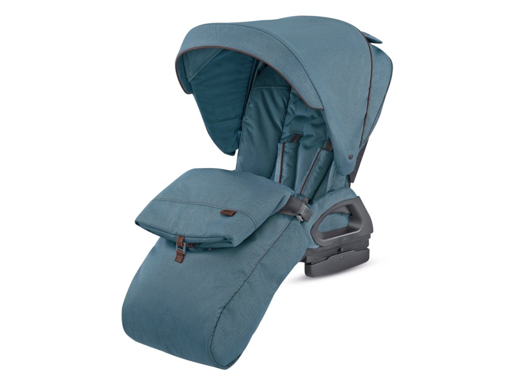 Náhradný nánožník na športové sedenie kočíka Inglesina Quad vo farbe Ascott Green so zdobením v ecokoži vo farbe coffe. Pasuje na všetky športové sedačky Sofia/Quad/Vittoria/Trilogy.