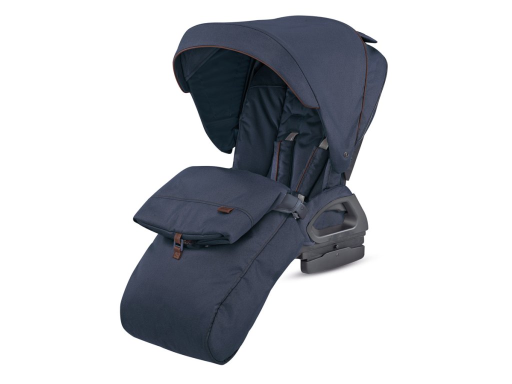 Náhradný poťah na športové sedenie kočíka Inglesina Quad vo farbe Oxford Blue so zdobením v ecokoži vo farbe coffe. Pasuje na všetky športové sedačky Sofia/Quad/Vittoria.
