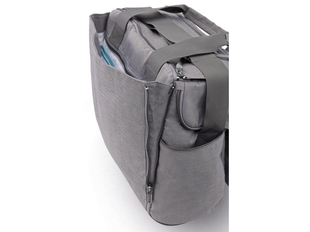 MULTIFUNKČNÁ TAŠKA s veľkými priehradkami, ktorá pojme všetko, čo rodičia pre svoje dieťa na cestách potrebujú mať po ruke. Vybavená prebaľovacou podložkou a odnímateľnou priestrannou listovou kabelkou, ktorá je ideálna pre krátke výlety.