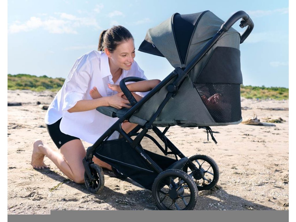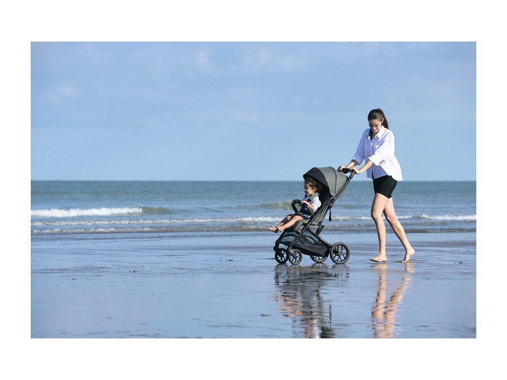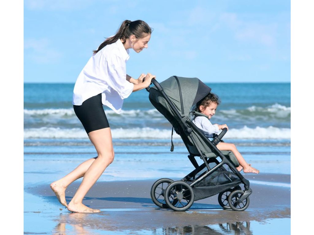 Priestranný, kompaktný a pritom ľahký športový kočík s veľkými kolesami pre deti až do 22 kg. Veľké, nadštandardne odpružené predné aj zadné kolesá sú výborné pre jazdu mestom, parkami aj ľahším terénom.