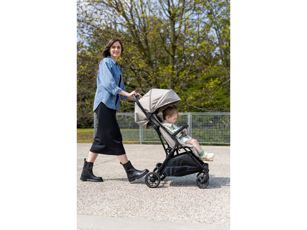 Špeciálne automatické skladanie sa aktivuje dotykom a v okamihu sa kočík sám zloží. Po zložení zostane stáť s rukoväťou nahor, takže ani rukoväť ani poťah sa nedotýkajú zeme, preto všade zachováte maximálnu hygienu.