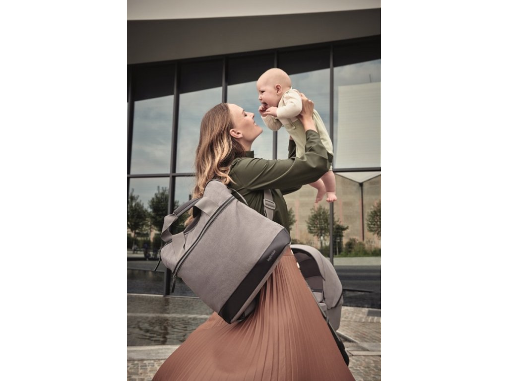 - Integrovaná nepremokavá prebaľovacia podložka z polyesteru veľkosti 58,5 x 34,5 cm.