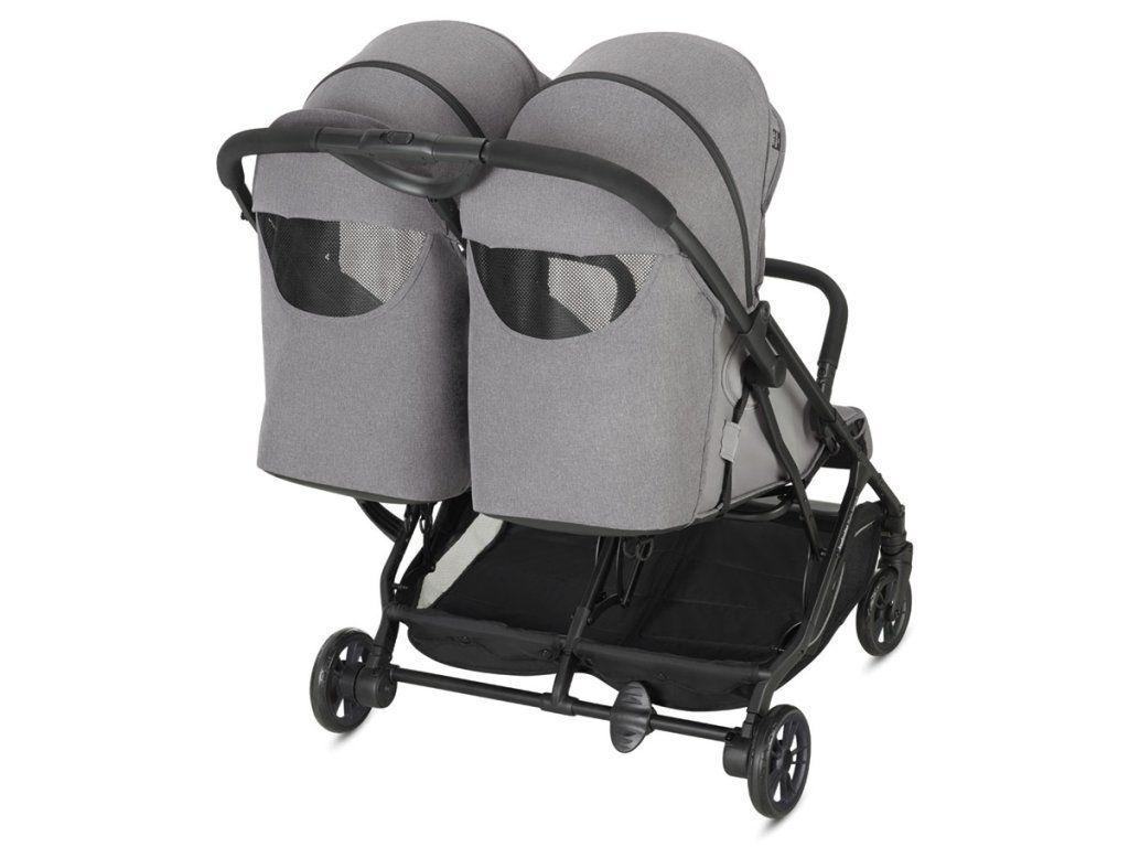Ľahký a kompaktný kočík pre dvojčatá v sivej farbe, dobre ho využijete aj pre vekovo blízkych súrodencov. Vhodný už od narodenia.