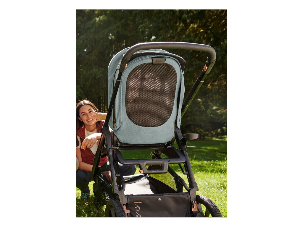 - Nová športová sedačka All Season s priedušnou chrbtovou opierkou a zatepľovacou vložkou, až do 22 kg, orientovaná po alebo proti smeru jazdy.