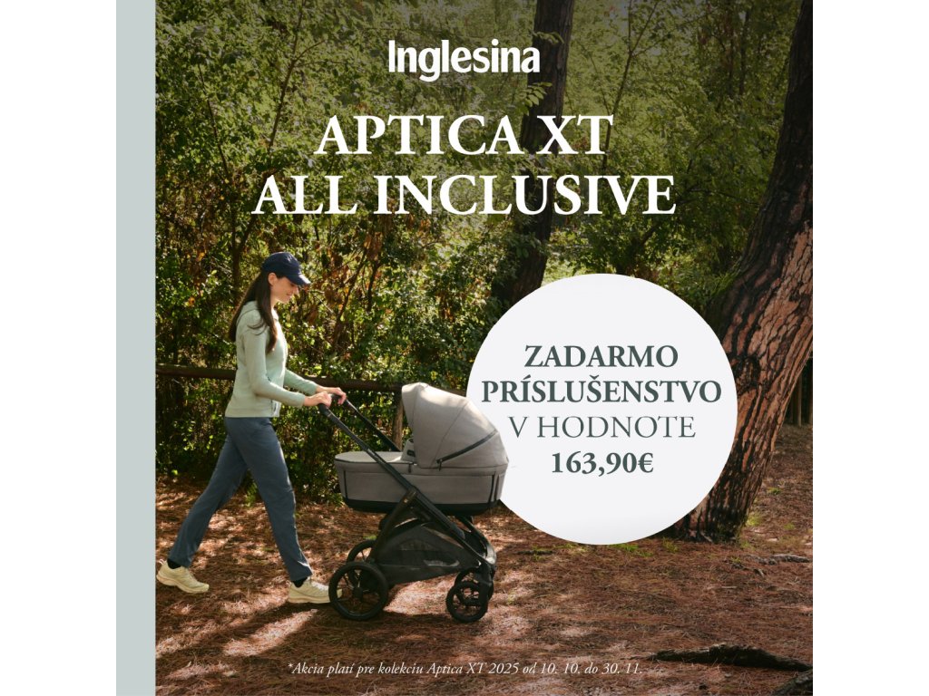 Kombinovaný kočík Aptica XT 2025 sa skladá z: priestrannej hlbokej vaničky XXL s 5-timi okienkami, matraca Welcome PadTM, stojana Stand UpTM, športovej sedačky All Season s búdkou a nánožníkom, košíka, držiaka pohárika a nového odľahčeného adaptívneho podvozku Aptica XT.
