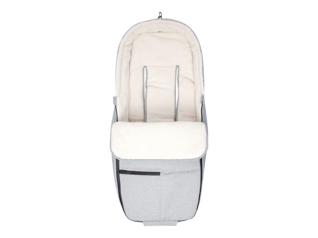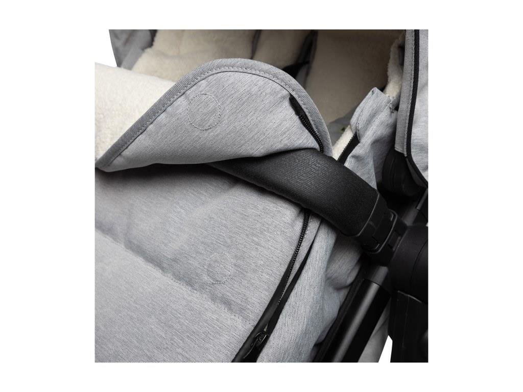 Vnútri je fusáčik zateplený plyšovou podšívkou. Horná časť fusáčika môže byť otvorená vďaka zipsu dookola. V zadnej časti je fusáčik vybavený otvormi na pretiahnutie výškovo nastaviteľných 5 bodových pásov športovej sedačky. Pri hlavičke je fusáčik zaťahovací. Prednú časť je možné tiež preklopiť cez madielko kočíka. V koordinovaných farbách kočíka Koelstra Next.