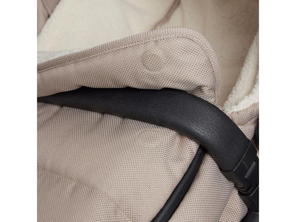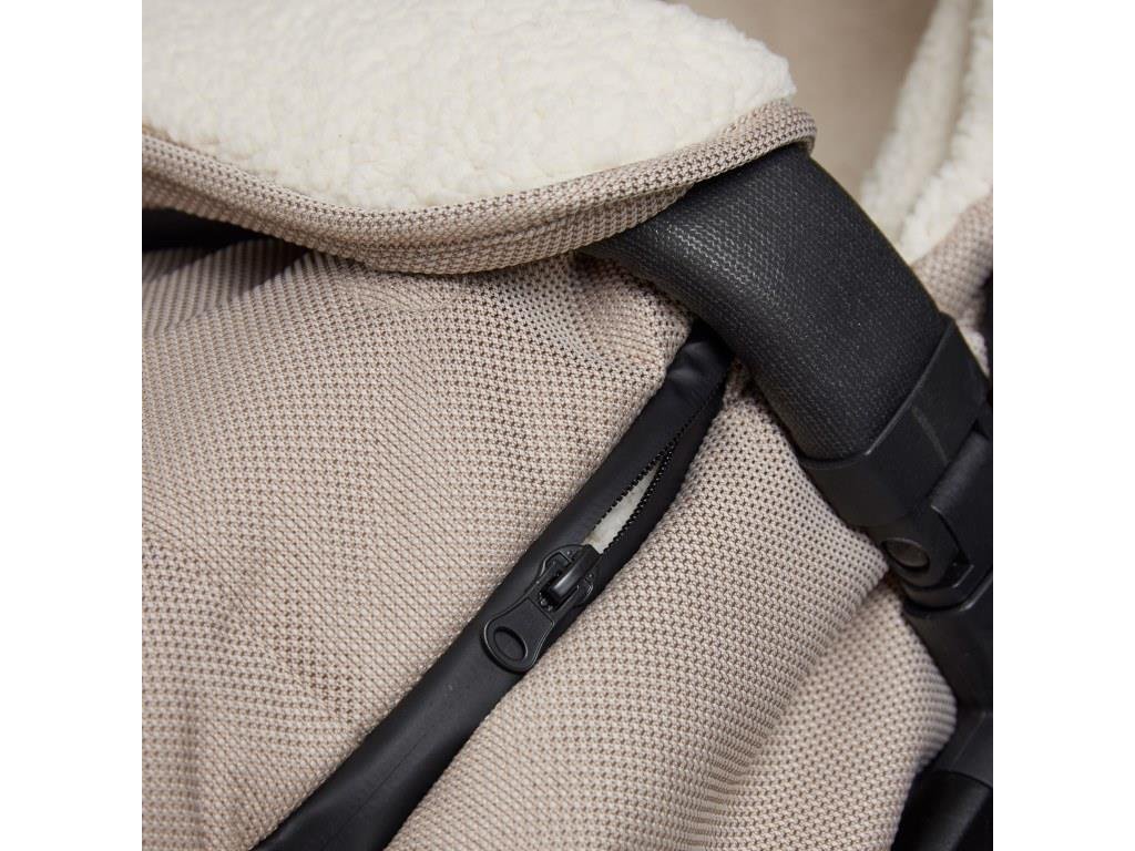 Vnútri je fusáčik zateplený plyšovou podšívkou. Horná časť fusáčika môže byť otvorená vďaka zipsu dookola. V zadnej časti je fusáčik vybavený otvormi na pretiahnutie výškovo nastaviteľných 5 bodových pásov športovej sedačky. Pri hlavičke je fusáčik zaťahovací. Prednú časť je možné tiež preklopiť cez madielko kočíka. V koordinovaných farbách kočíka Koelstra Next.