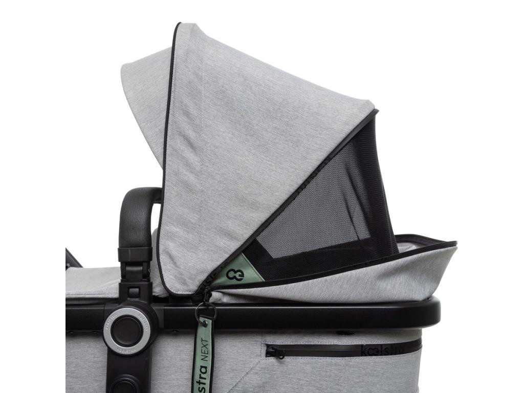 Spočiatku, do 9 kg, budete dieťa voziť v hlbokej korbičke nasadenej na podvozku. Neskôr až bude dieťa sedieť, presedláte do športiaku, ktorý využijete až do 22kg. V oboch prípadoch bude mať dieťa nadmieru miesta a dokonalé pohodlie. Predné otočné aretovacie kolesá uľahčujú manévrovanie aj v úzkych uličkách medzi regálmi v obchode. Je tiež pohodlný, polohuje sa celá športová sedačka a dieťa tak môže spať. Na podvozku ju môžete mať po alebo proti smeru jazdy a navyše ju zložíte spolu s podvozkom. Hlboký kočík Koelstra Next užijete vďaka jeho veľkosti po dlhú dobu.