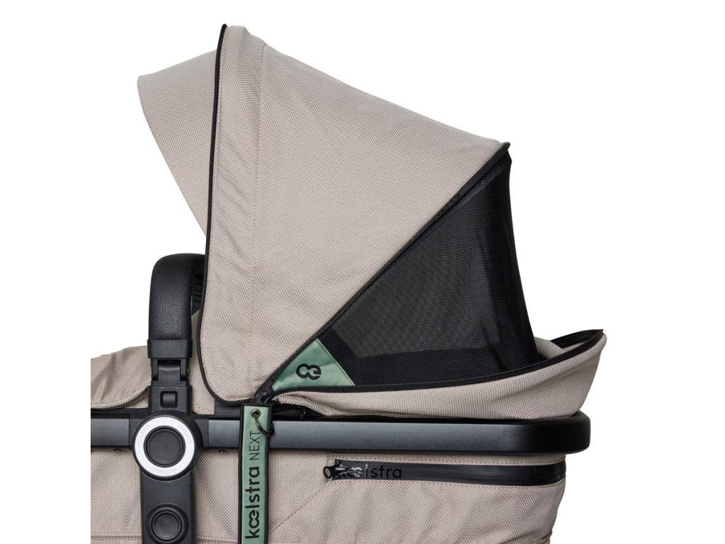 Spočiatku, do 9 kg, budete dieťa voziť v hlbokej korbičke nasadenej na podvozku. Neskôr až bude dieťa sedieť, presedláte do športiaku, ktorý využijete až do 22kg. V oboch prípadoch bude mať dieťa nadmieru miesta a dokonalé pohodlie. Predné otočné aretovacie kolesá uľahčujú manévrovanie aj v úzkych uličkách medzi regálmi v obchode. Je tiež pohodlný, polohuje sa celá športová sedačka a dieťa tak môže spať. Na podvozku ju môžete mať po alebo proti smeru jazdy a navyše ju zložíte spolu s podvozkom. Hlboký kočík Koelstra Next užijete vďaka jeho veľkosti po dlhú dobu.