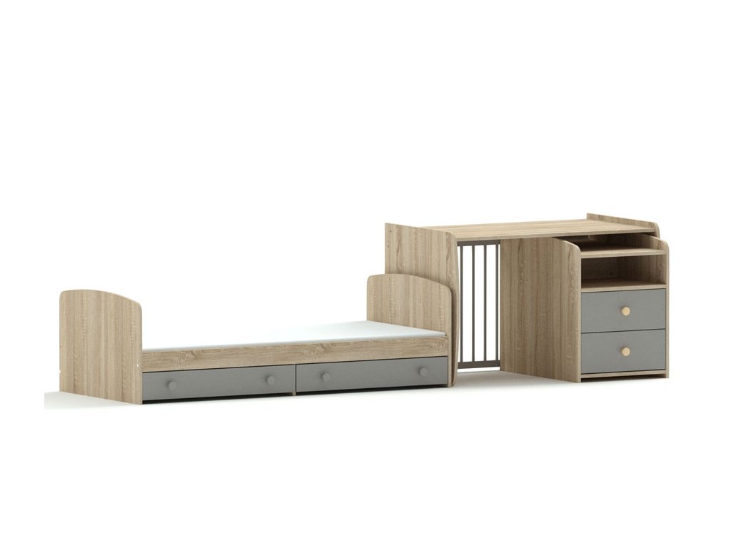 Neskôr môžete postieľku premeniť na vaľandu s rozmermi 180 x 80 cm (s 2 kontajnermi) a na písací stôl(š. 124 cm, hl. 80 cm, v. 74 cm)