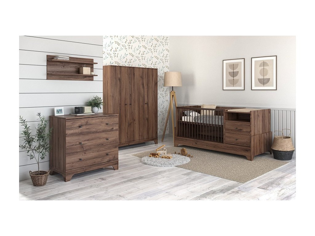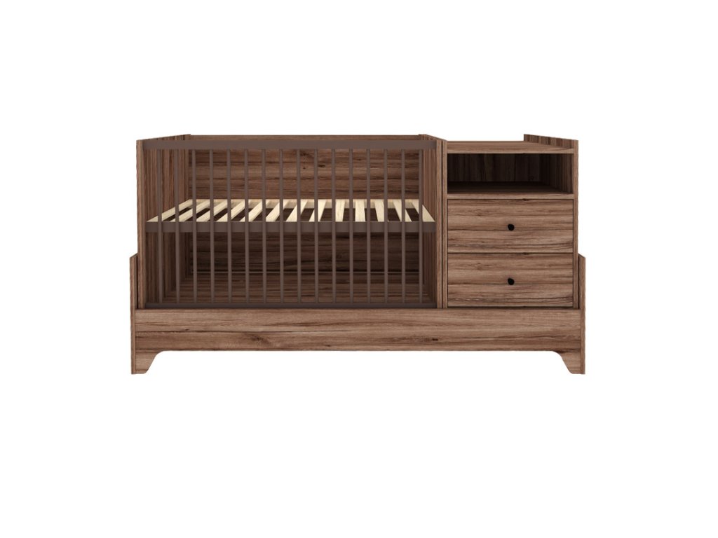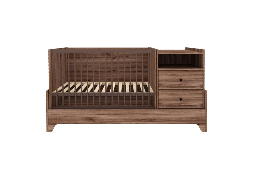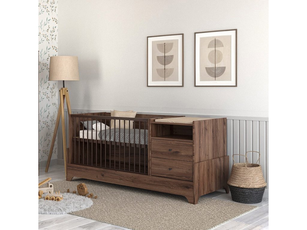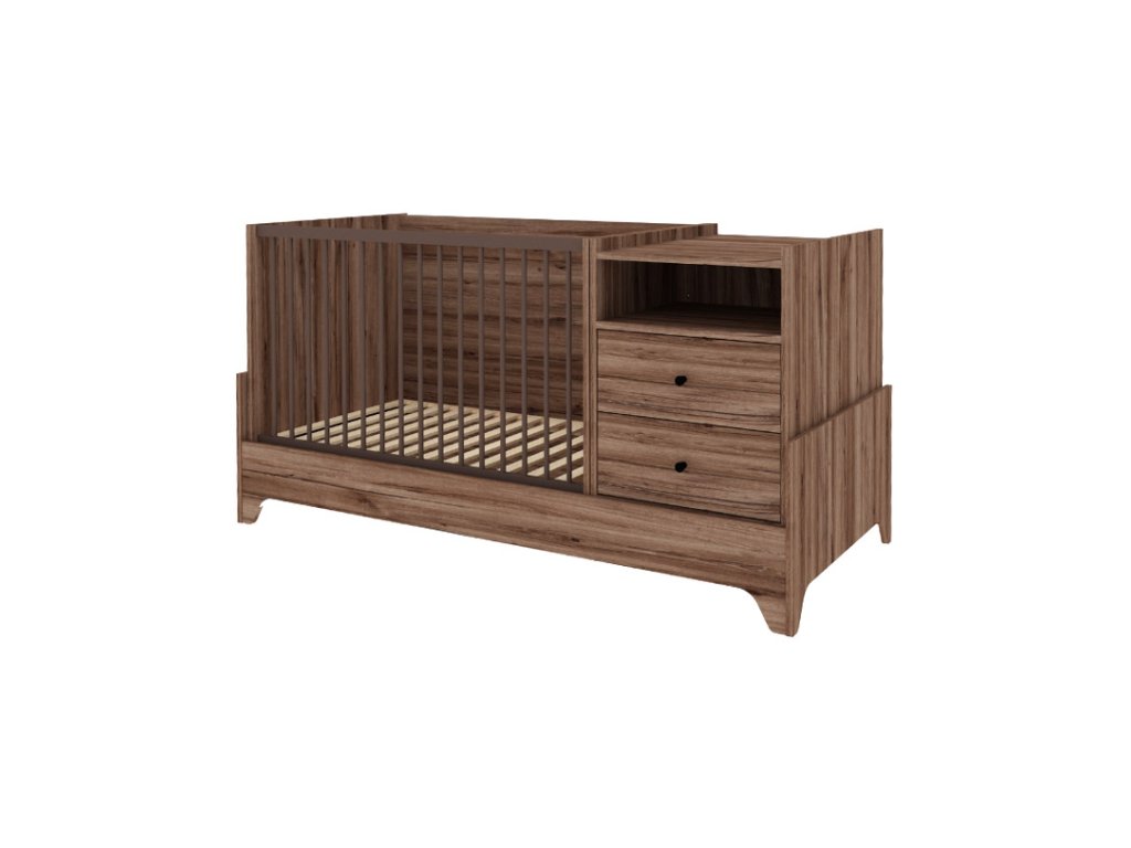 Najvýraznejší kúsok kolekcie Nest Walnut, kombinovaná postieľka, je nielen krásny, ale aj veľmi praktický. Táto premyslene navrhnutá detská postieľka predstavuje priestorovo úsporné riešenie, ktoré v jednom kuse nábytku kombinuje pohodlnú detskú postieľku s veľkým úložným priestorom a miestom na prebaľovanie. Vstavané zásuvky a odkladacie police pomáhajú udržiavať poriadok v potrebách pre dieťa, takže plienky, oblečenie, krémy alebo hračky sú vždy po ruke. Rošt z masívu nastavíte do troch polôh, ako sa dieťa vyvíja a pridáva pohybové zručnosti, ho budete znižovať.