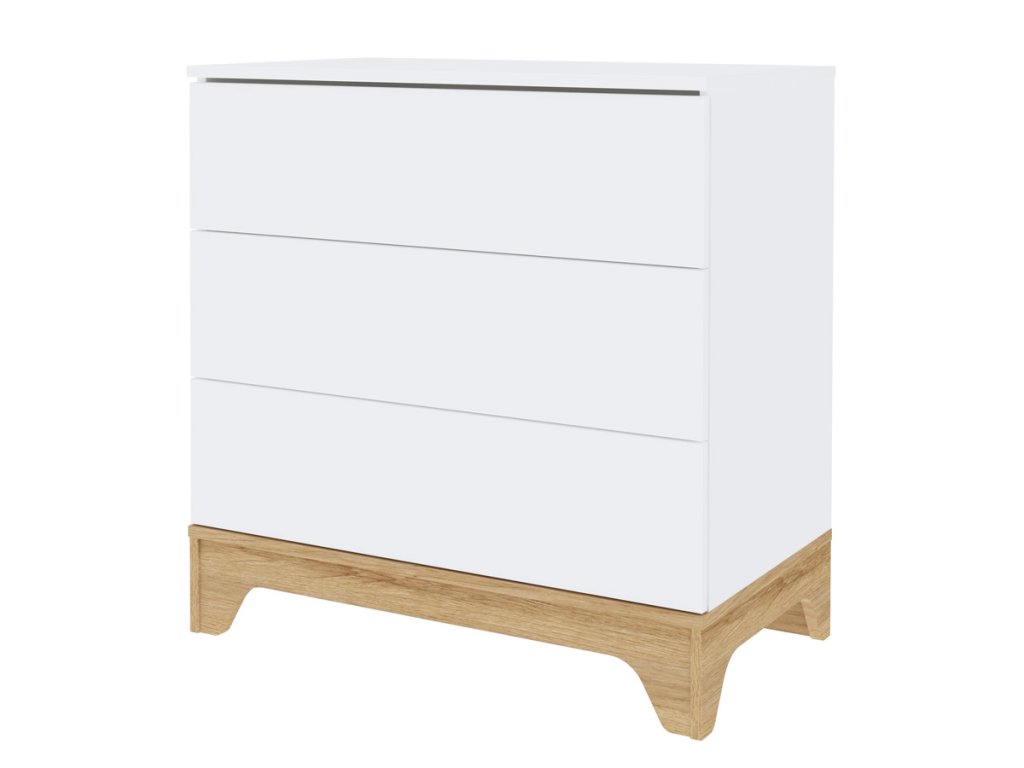 Izba pre novorodencov sa prakticky nezaobíde bez komody a prebaľovacieho pultu. Zásuvková komoda Lumina white tvorí taký kúsok nábytku, ktorý po doplnení o prebaľovací nadstavec, pokrýva oba tieto požiadavky. Je navrhnutá tak, aby sa zmestila do relatívne malého priestoru, a napriek tomu ponúkla čo najväčšiu pomoc novým rodičom.