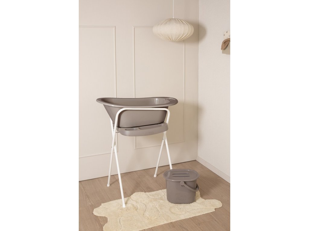 Stojan má výšku 103 cm, otvor na zavesenie uteráka a vyhradené miesto na mydlo. Je skladací a vybavený inovatívnym Click systémom. Len 2 kliknutia a vanička je ľahko a bezpečne umiestnená na kúpací stojan. Rovnako ľahko môže byť pomocou kliknutia vanička zo stojana odpojená. Tiež kúpací kýblik Bébé-Bubble je možné na tento stojan umiestniť, takže vám stačí kúpiť len 1 stojan a naň umiestniť najprv Bébé-Bubble a potom vaničku.