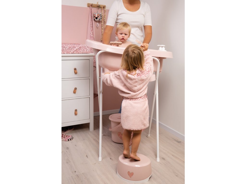 Kúpanie bábätka patrí k najobľúbenejším večerným rituálom. Ak máte stojan nemusí sa nutne odohrávať v kúpeľni. Niekedy sa pekne pretiahne a tak je dôležitá správna výška vaničky na správne držanie tela a tiež mať všetko na dosah a nemusieť od kúpaného dieťaťa odchádzať. Stojan Click od Bébé-jou je preto vybavený integrovaným držiakom uteráka alebo županu a miestom na položenie mydla alebo kúpacích gélov a šampónov. Nikdy nenechávajte dieťa pri kúpaní bez dozoru.