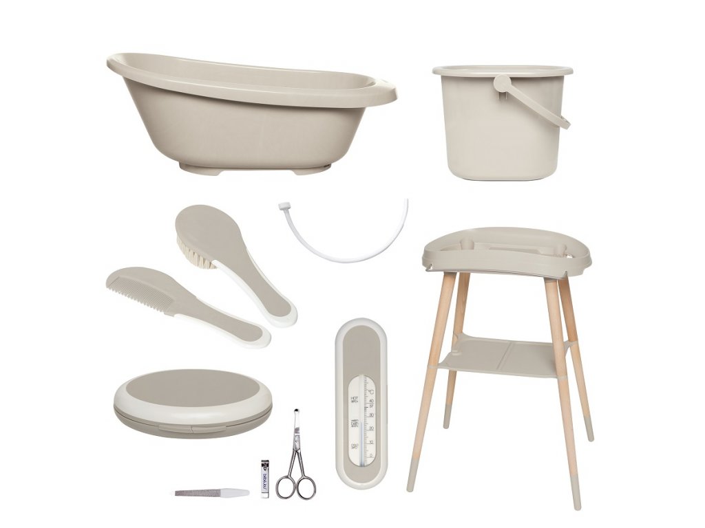 Sada obsahuje vaničku Sense a luxusný stojan z lakovaného buku, kýblik na plienky, sadu na manikúru, hrebeň a kefu, teplomer do vaničky a vypúšťaciu hadicu. Skrátka vaše kompletné vybavenie na starostlivosť a kúpanie!