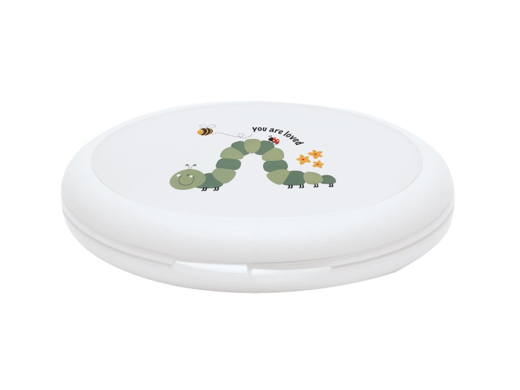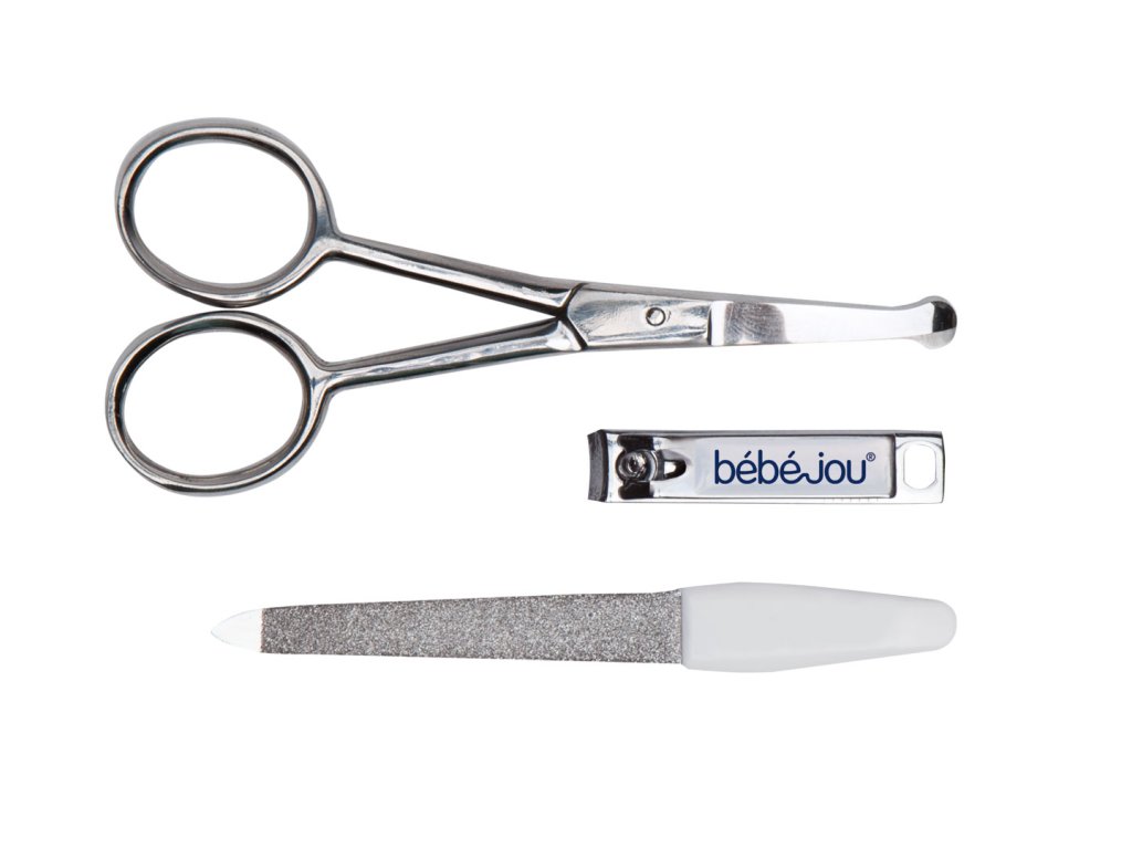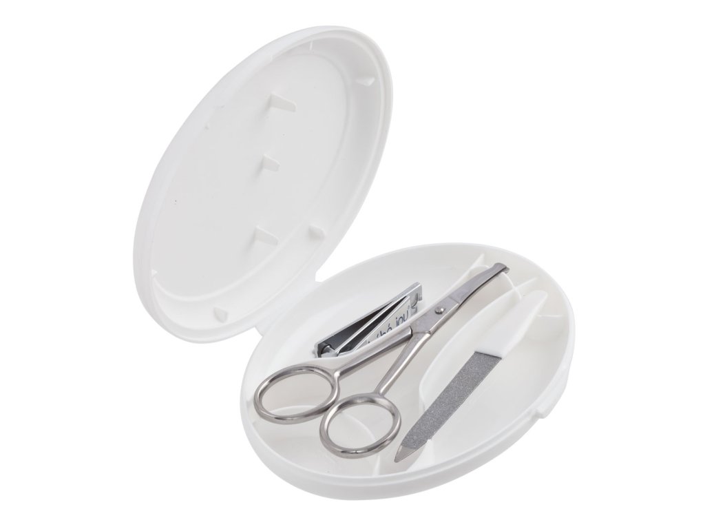 Obsahuje nožnice so zaoblenými koncami, pilník na nechty a tiež klieštiky na nechty. Všetko je vyrobené z nehrdzavejúcej ušľachtilej ocele. Krabička s výrazným motívom na viečku chráni pred prachom a pomáha udržiavať manikúru v čistote. Ale aj napriek tomu pred každým použitím jednotlivé nástroje dôkladne očistite a u novorodencov aj dezinfikujte roztokom liehu.